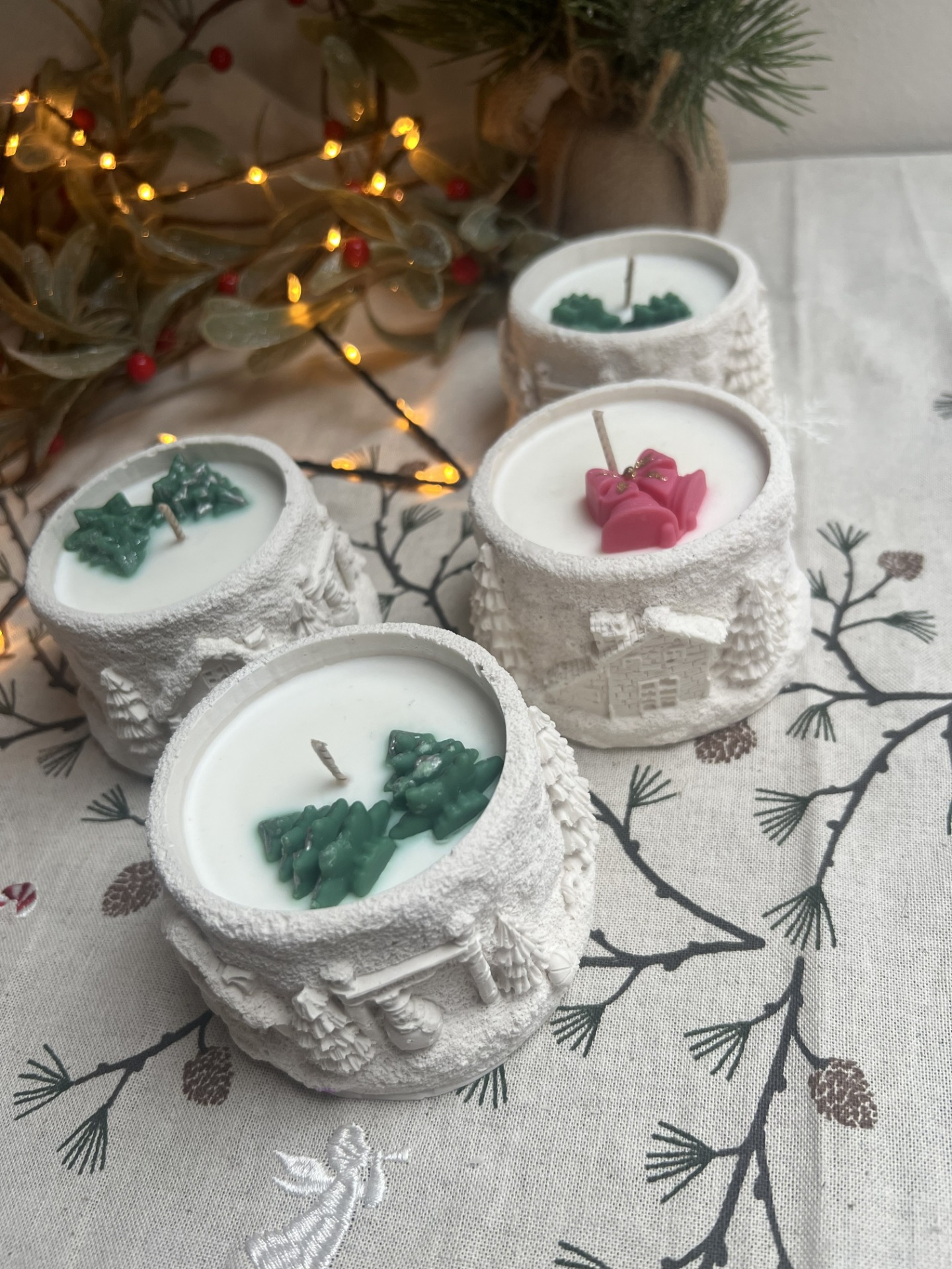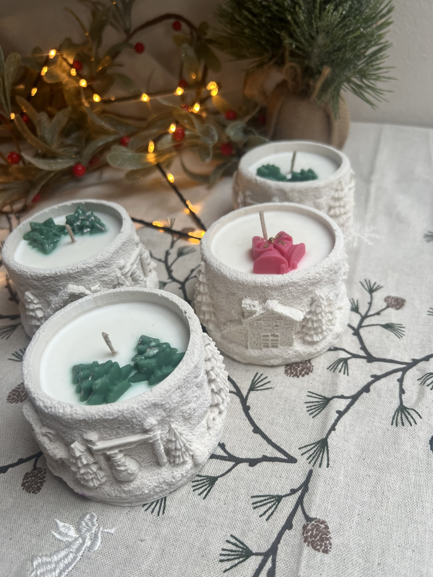 Každá svíčka je odlita do ručně vyrobené nádoby z jesmonitu a zdobená vánoční ozdobou, která je ručně litá a dělají z každého kousku jedinečný originál. Nádobu můžete po vyhoření využít znovu, třeba jako stylovou dekoraci, nebo květináč na sukulent.