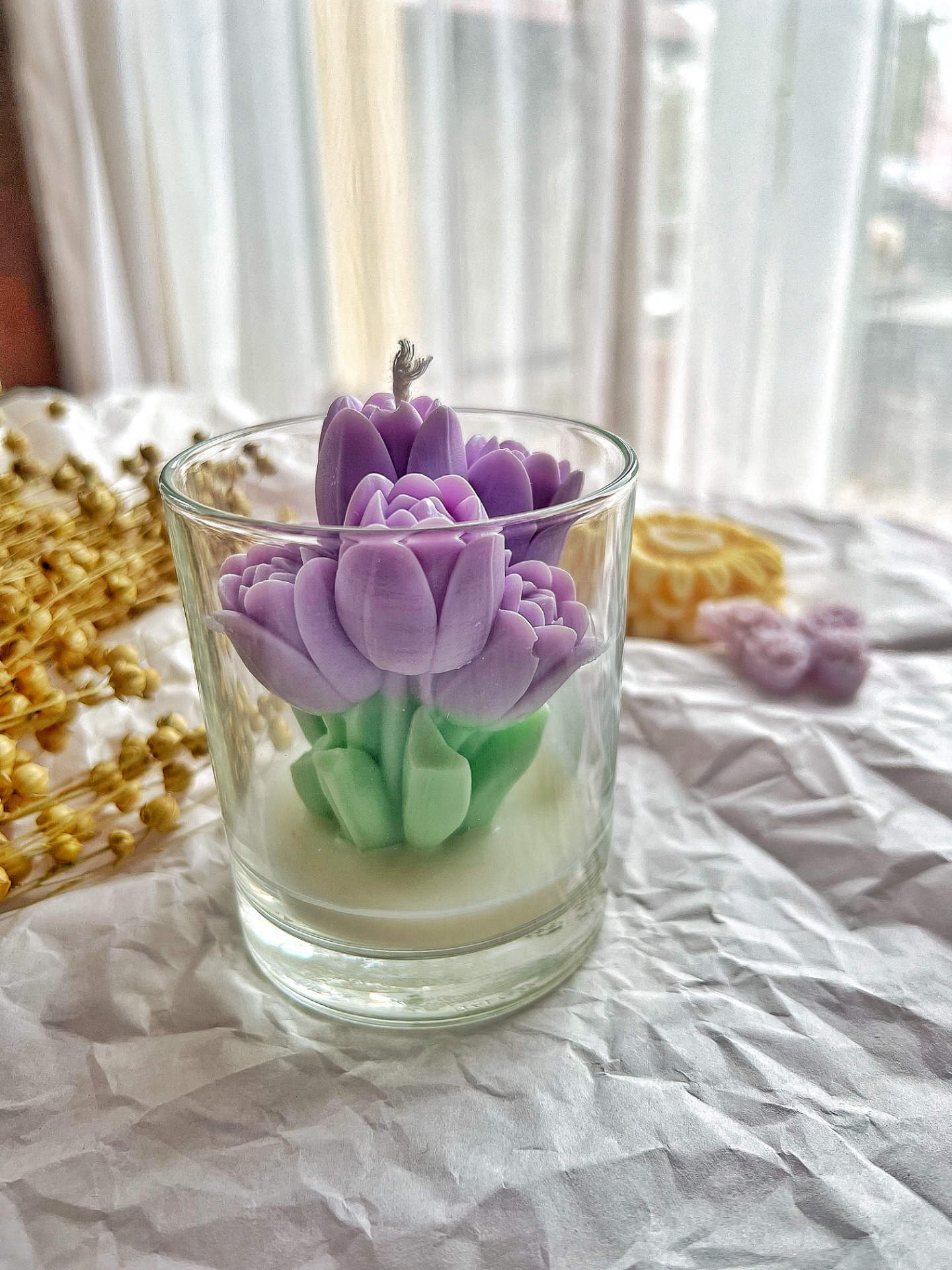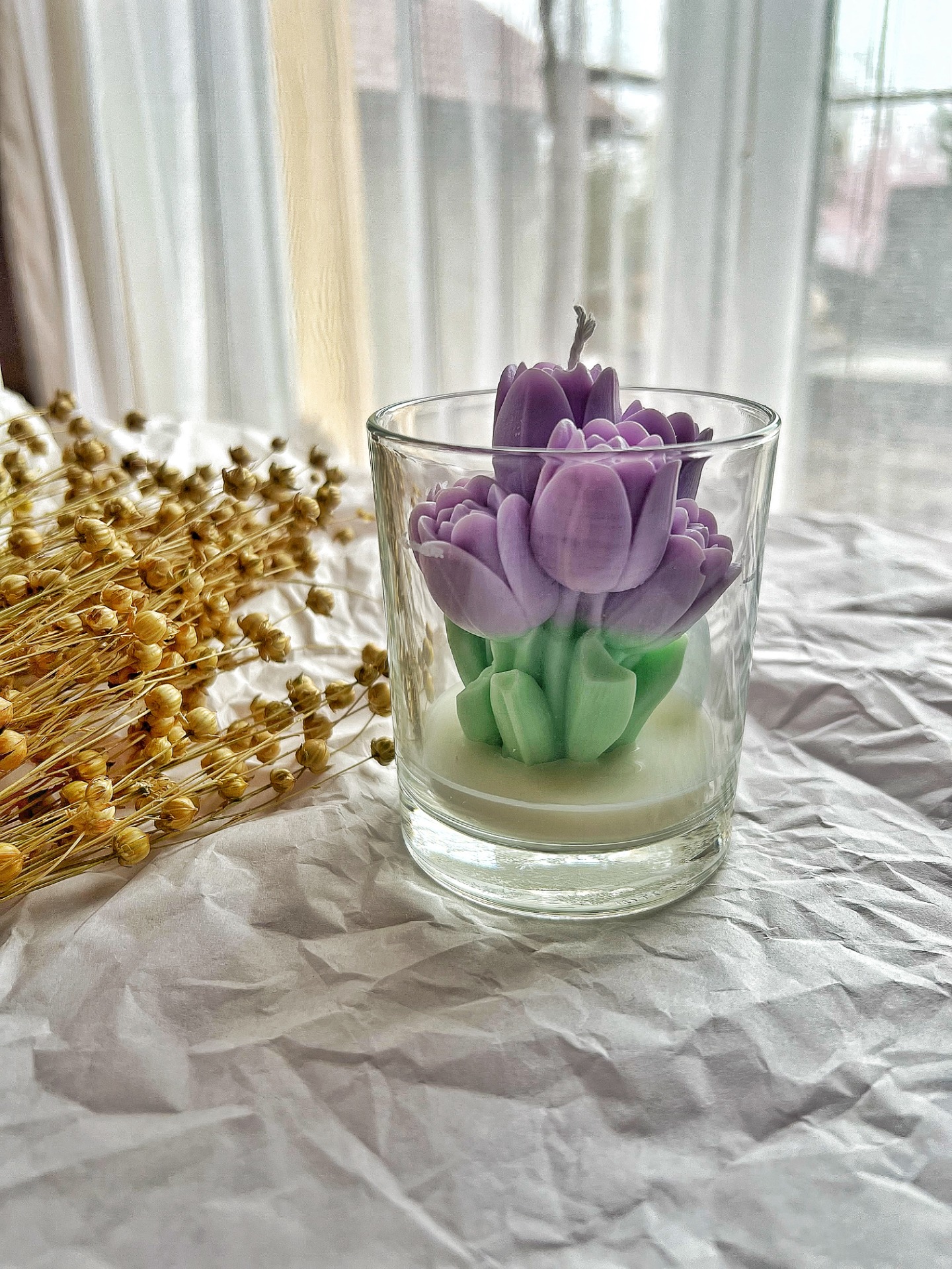 Udržitelný kousek: Stejně jako naše ostatní svíčky, i tato vdechuje nový život upcyklovanému sklu, které podtrhuje její přírodní charakter.