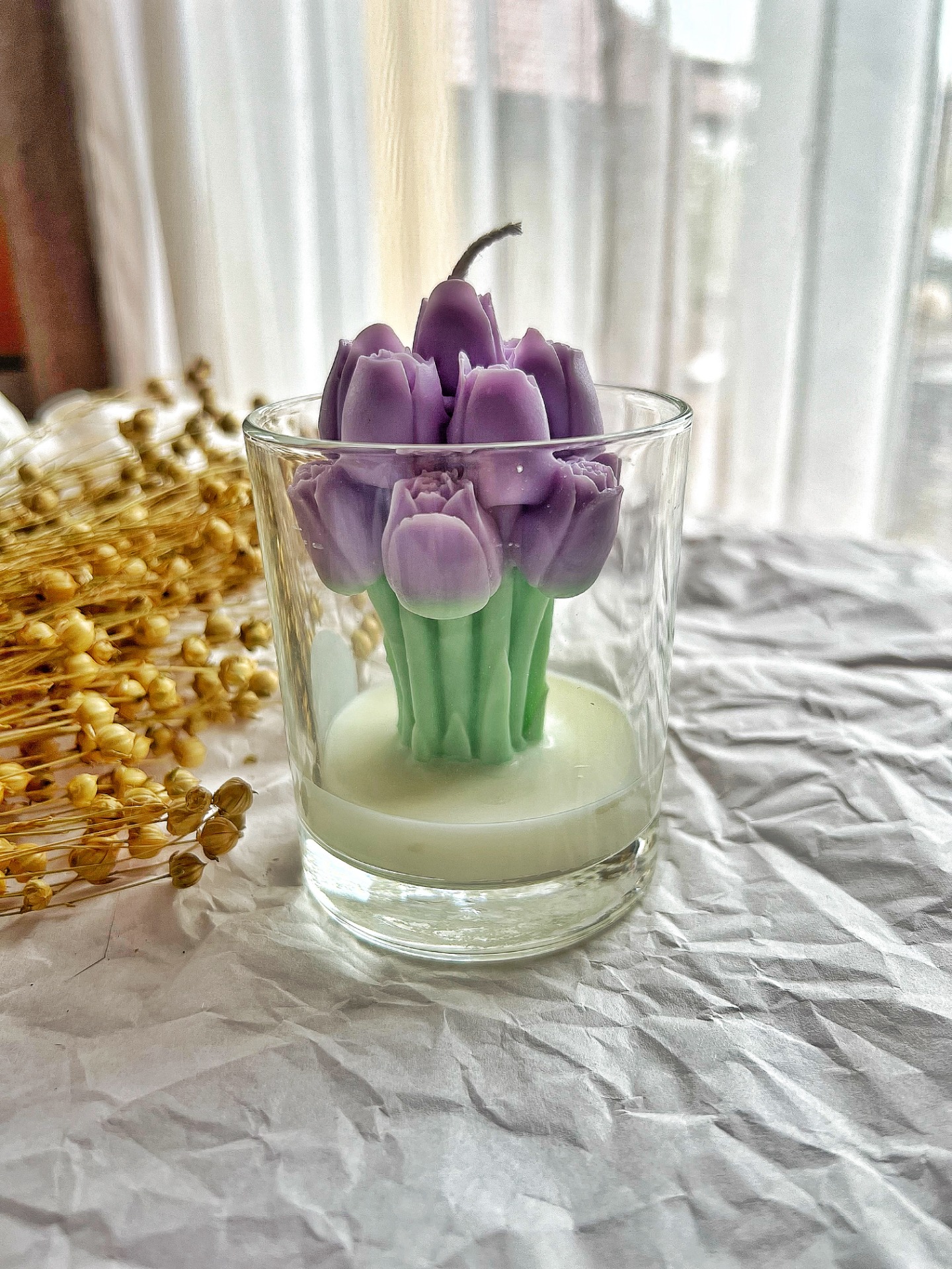 Udržitelný kousek: Stejně jako naše ostatní svíčky, i tato vdechuje nový život upcyklovanému sklu, které podtrhuje její přírodní charakter.