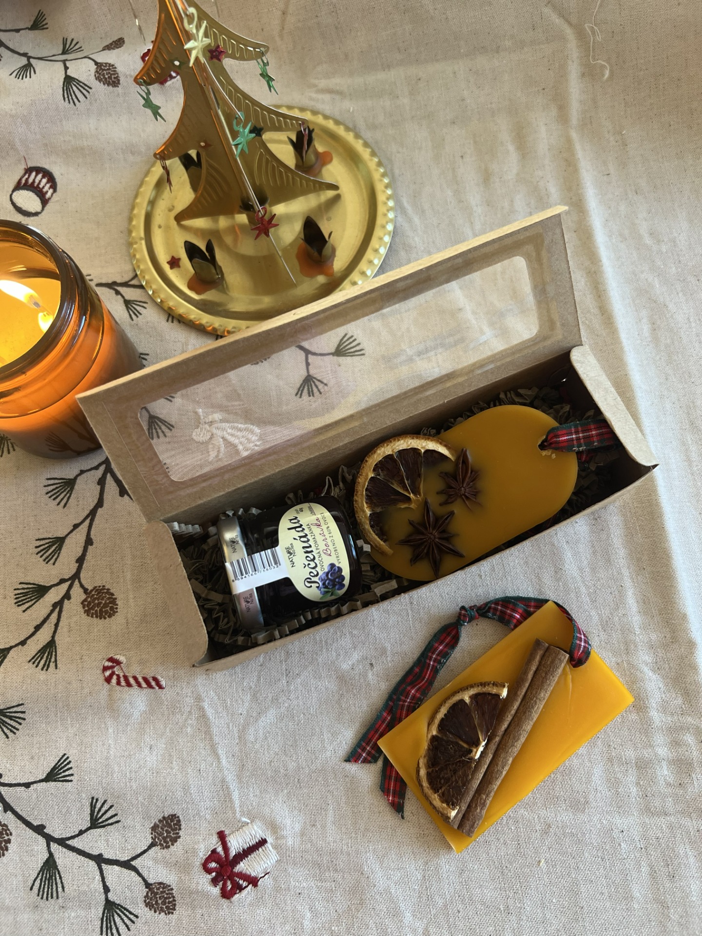 Tyto ručně odlévané ozdoby z čistého včelího vosku jsou nejen krásnou dekorací, ale i přirozeným způsobem, jak provonět interiér. Ozdoby jsou zdobené pomerančem, skořicí a badyánem. Dokonalá souhra pro přírodně laděný vánoční stromeček a dekorace.