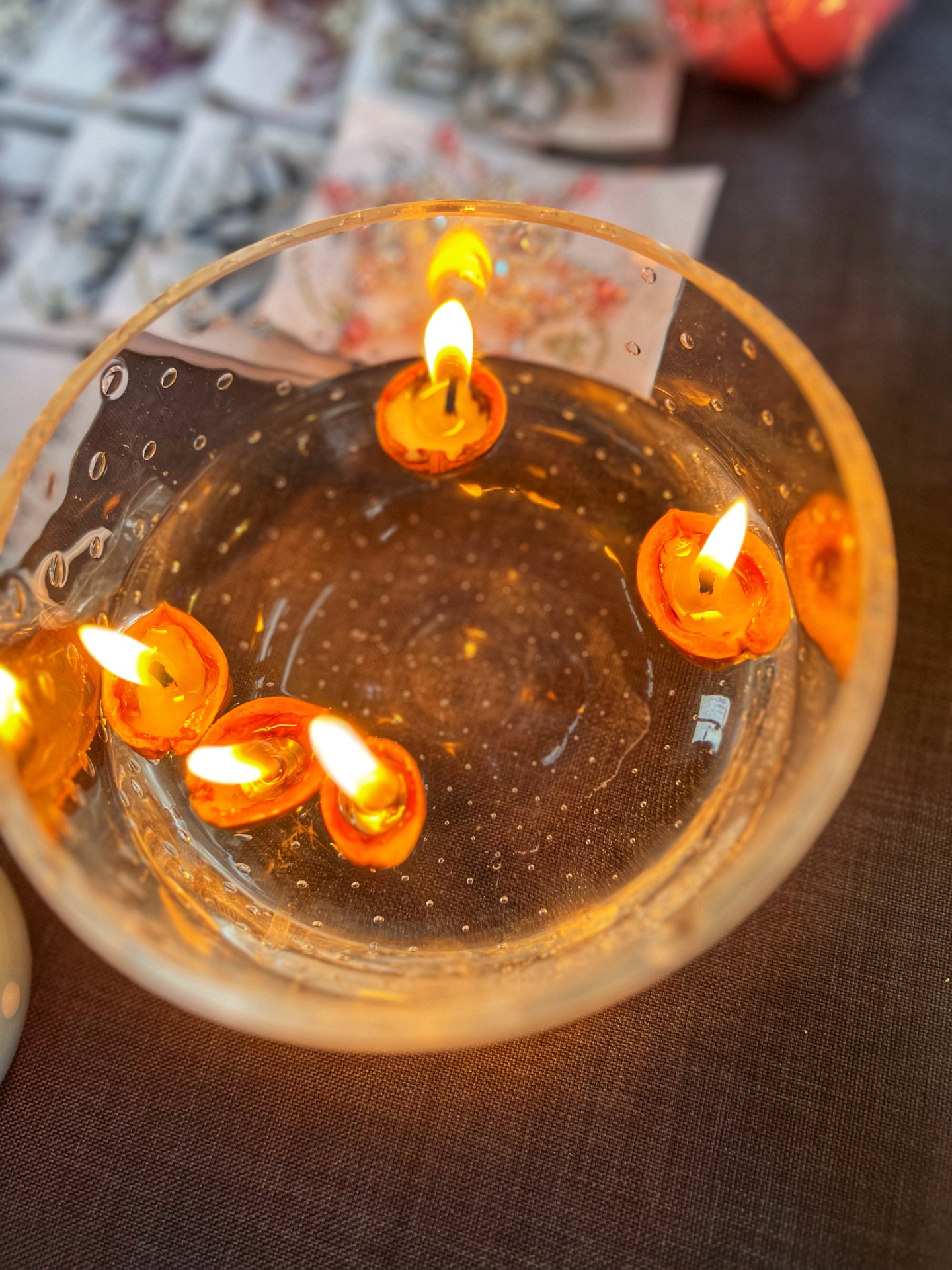 Lodičky s rozsvícenými plamínky se pouští po vodě – obvykle v umyvadle, vaně nebo v míse. Každý člen rodiny má svou vlastní lodičku, která představuje jeho život a osud. Kam dopluje, tam směřují i naše přání a naděje.