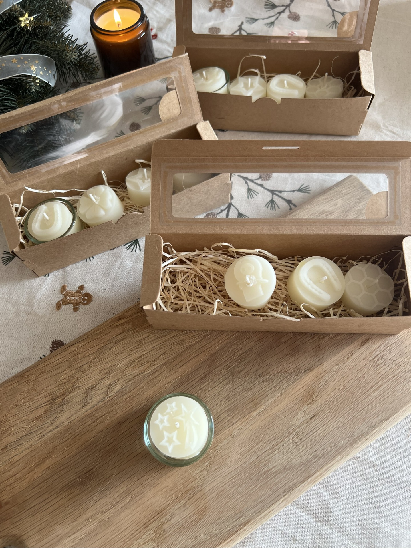Ručně nalévané přírodní čajové svíčky ze včelího vosku (bez vůně)