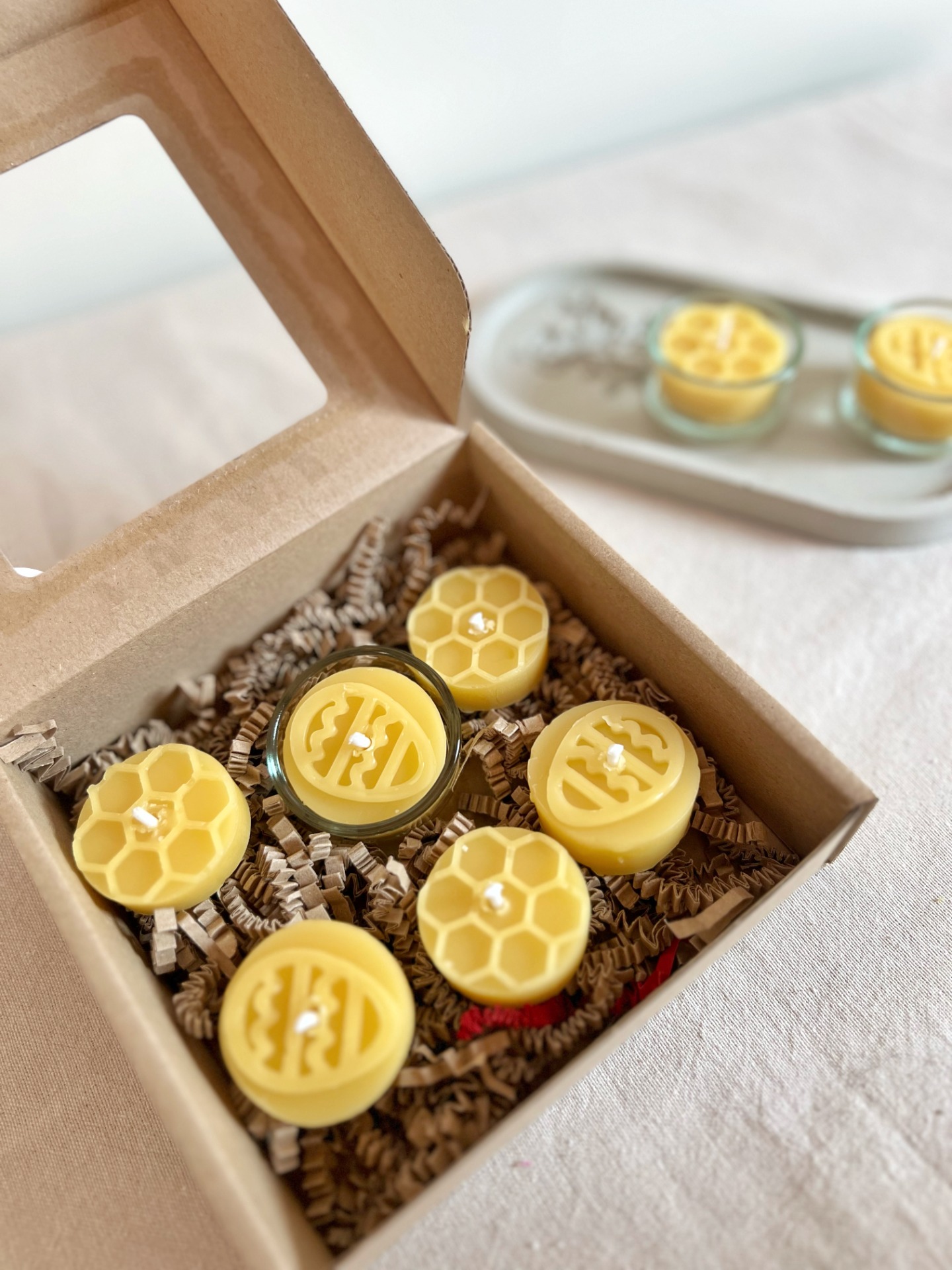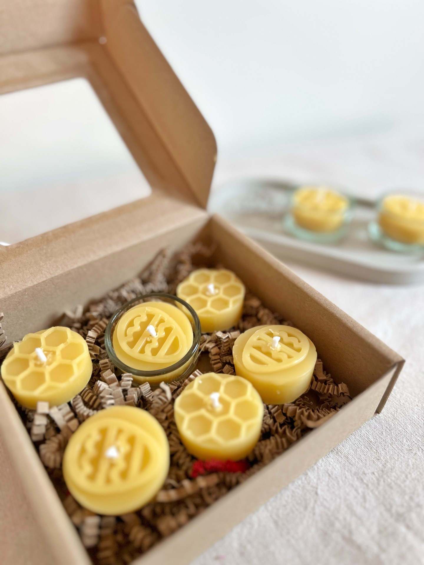 6 ks přírodních čajových svíček1 ks skleněný svícen (4 × 2 cm)