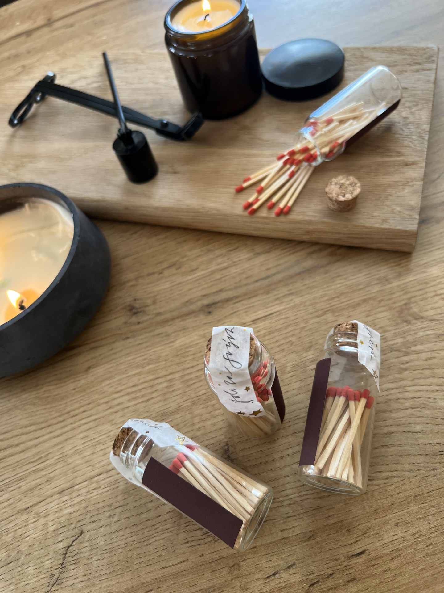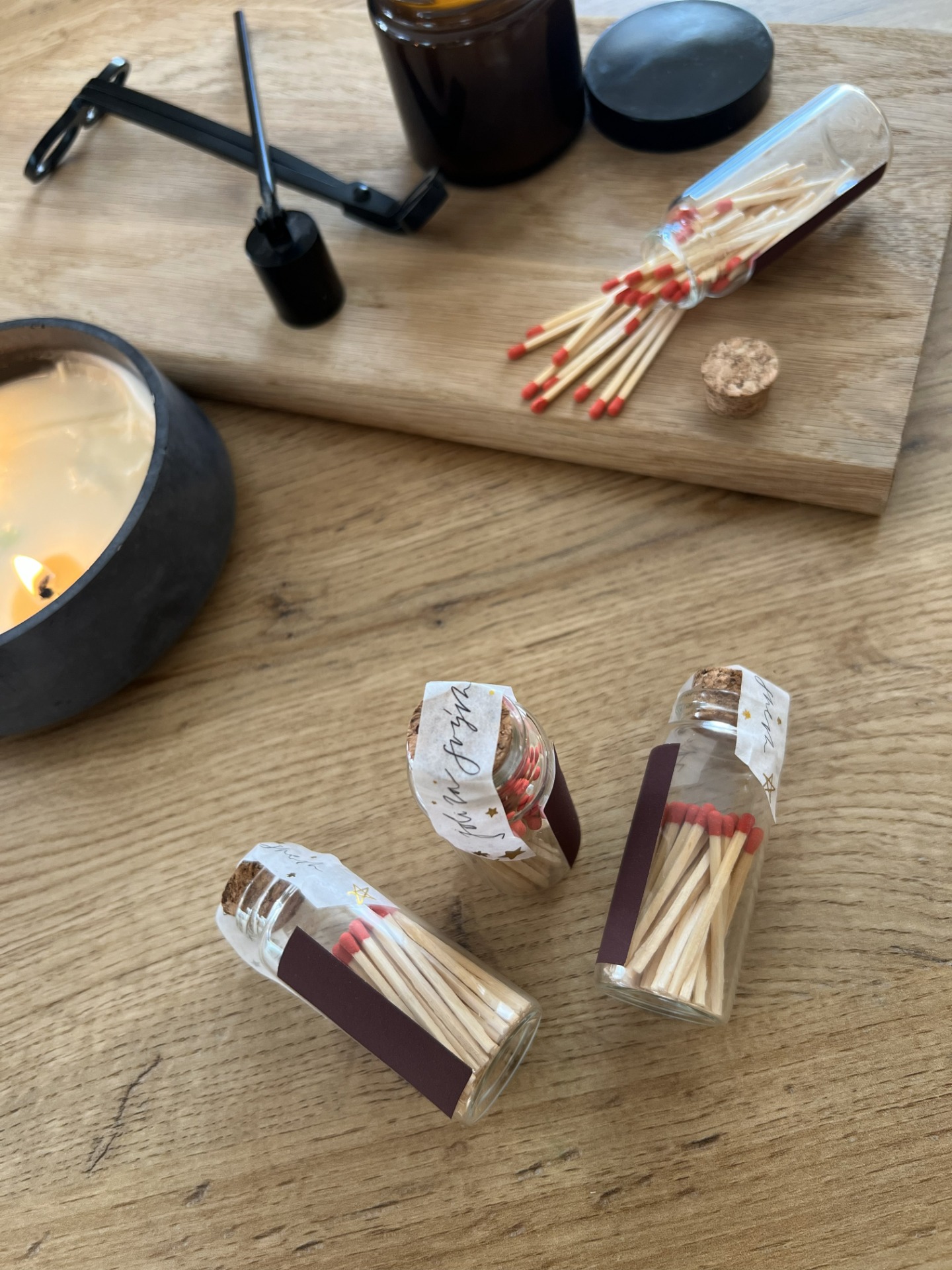 Malá skleněná dóza s korkovým uzávěrem ukrývá cca 45 kouzelných zápalek se škrtátkem na straně. Každá zápalka je zalepena páskou s poselstvím "Jdi za svým snem", což z nich činí nejen praktický doplněk k mým svíčkám, ale i malou inspirativní dekoraci pro váš domov. Perfektní jako drobný dárek nebo okouzlující detaily pro každodenní chvíle.