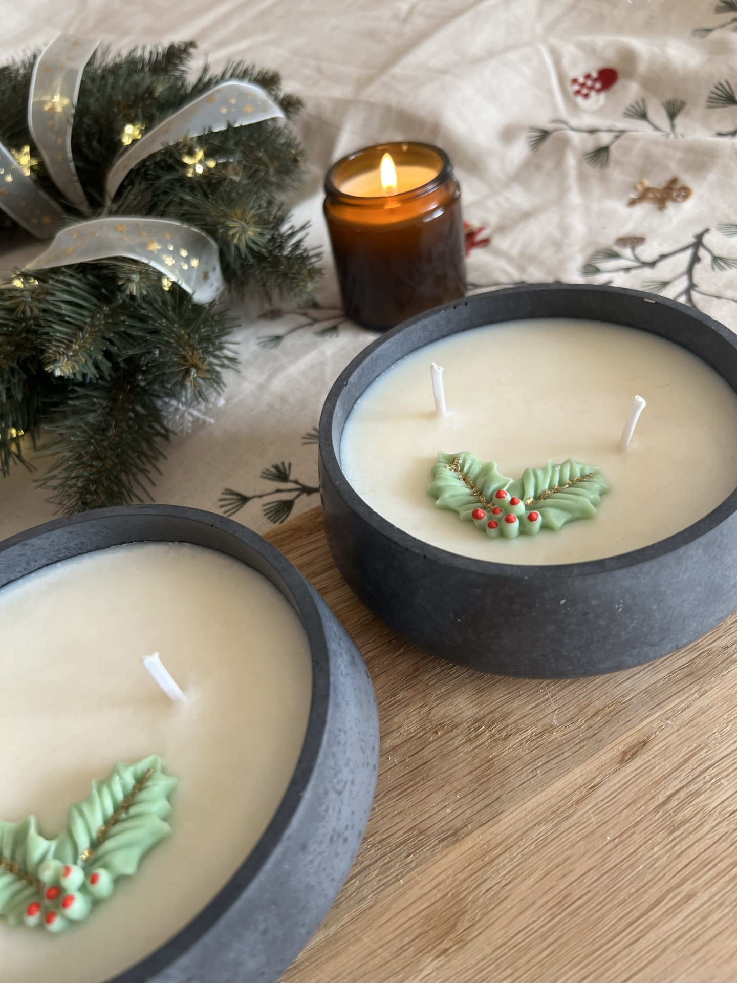 Každá svíčka je odlita do ručně vyrobené nádoby z jesmonitu a zdobená voskovými květy, které jsou ručně lité a dělají z každého kousku jedinečný originál. Nádobu můžete po vyhoření využít znovu, třeba jako stylovou dekoraci, nebo květináč na sukulent.